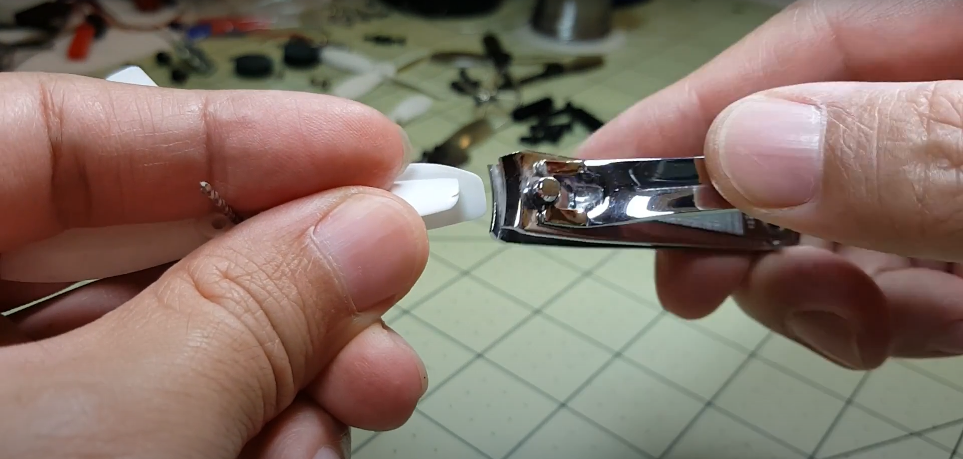 Figure 5: Trimming a plastic propeller with nail clippers (Albert Kim)